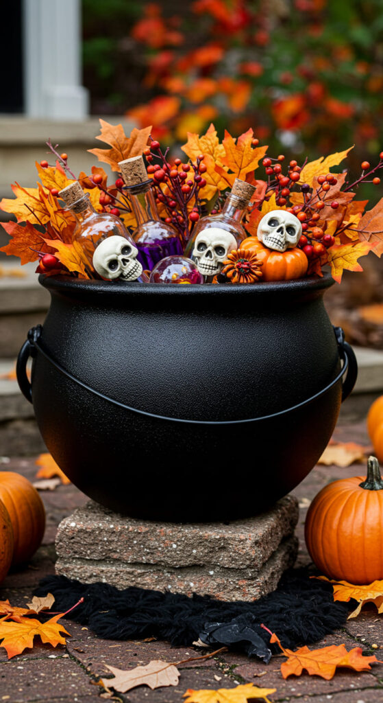 This versatile piece can serve as a focal point in any display, whether indoors or outdoors. Filled with cauldron crafts like faux potions or vibrant autumn foliage, it sparks imagination.