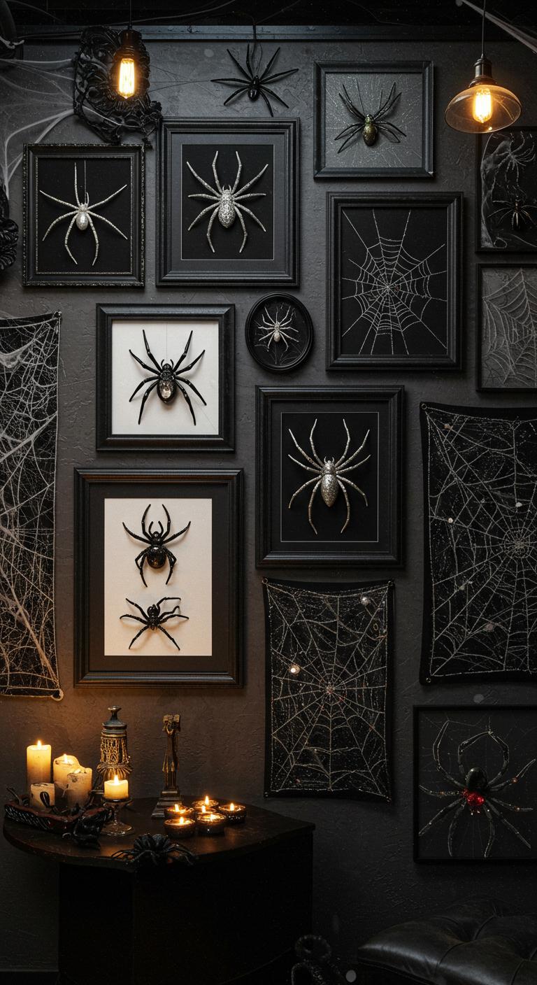 Tapestries featuring intricate webs and glimmering spiders can transform any wall into a haunting masterpiece. A gallery wall, showcasing various spider-themed prints, adds depth and intrigue, inviting guests to explore the creativity behind each piece.